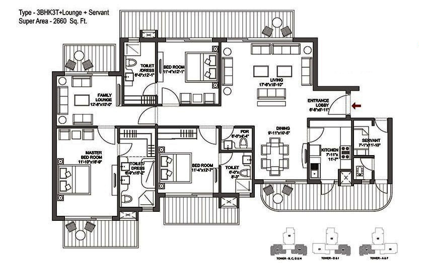Area : 1105.00 sq.ft. - 1423.00 sq.ft