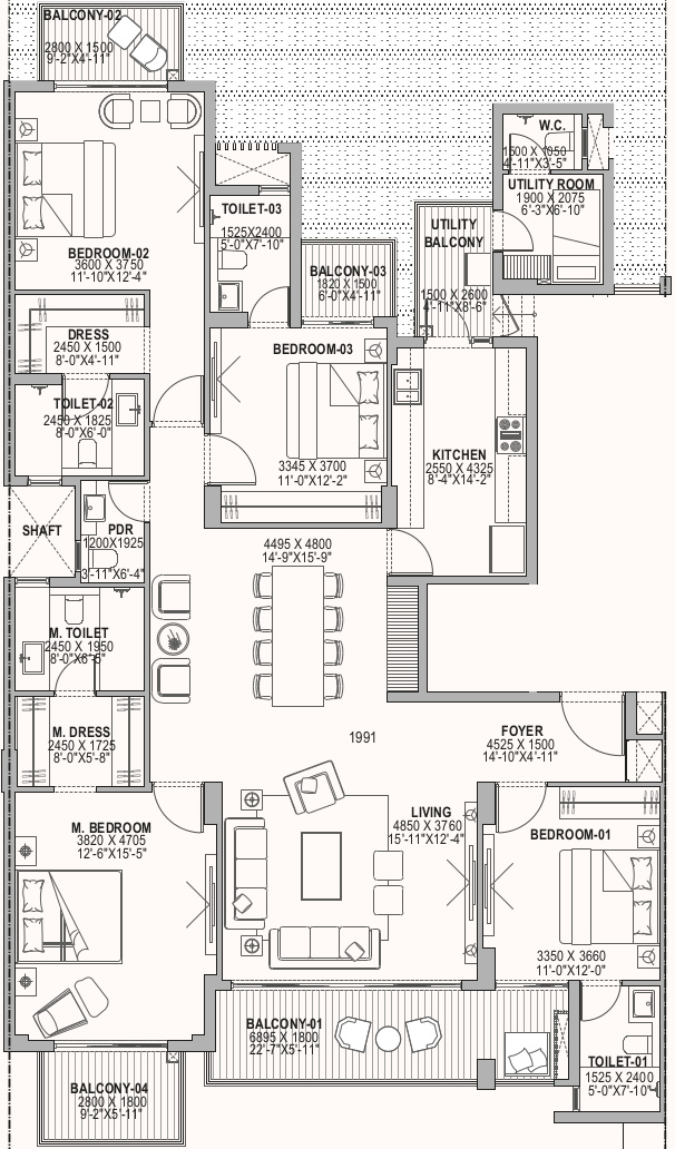 Area : 955.00 sq.ft. - 1095.00 sq.ft.