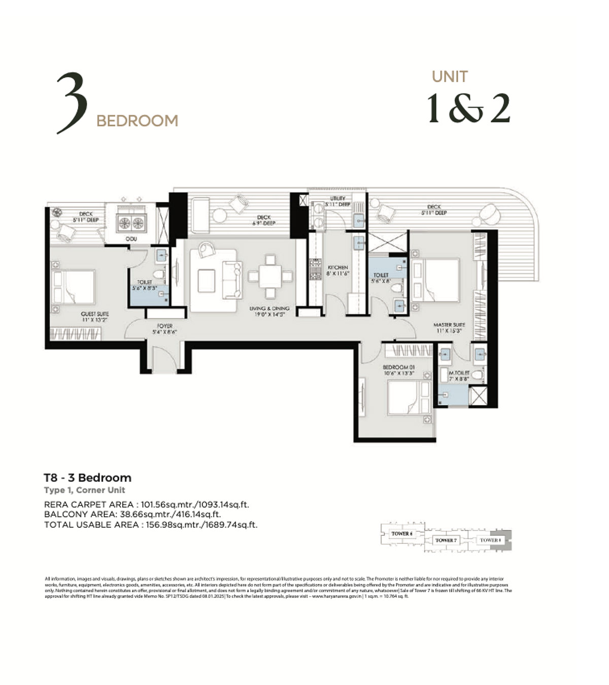 | 3 BHK - T8 - Type 1 Corner Unit | 2100 SQ.FT | On Request | Booking Open |