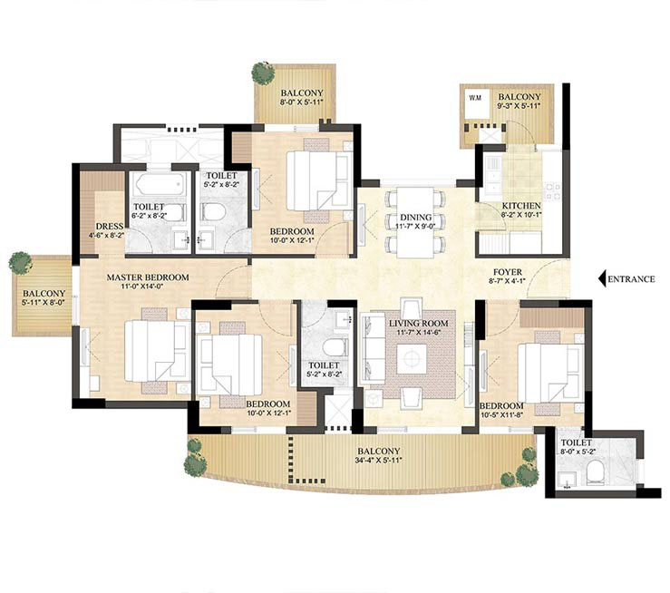 | 4 BHK | 2308 | 2.07 Cr* | On Request |
