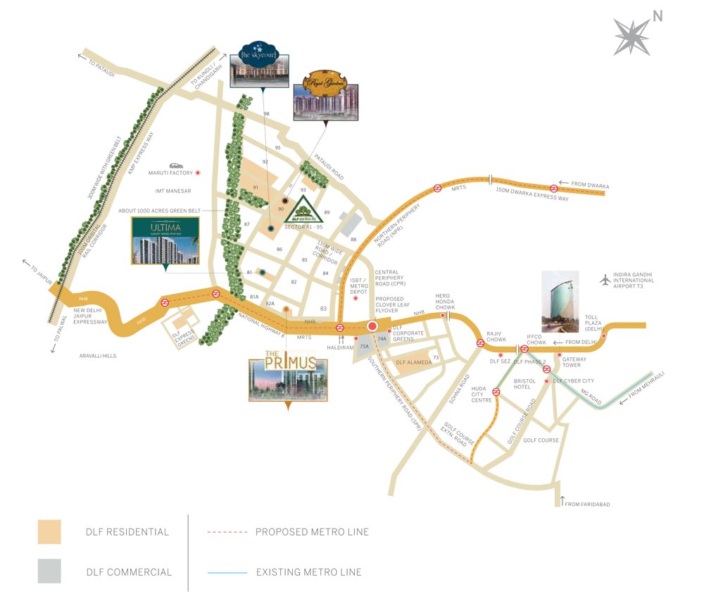Dlf Group Launched Luxury Residential Projects The Primus at Sector 82A Gurgaon Which is Surrounded by 500 Acres Vatika City & Close to NH-8. Dlf Primus located near commercial business sector 74A/75A Gurgaon. DLF Primus Offers Choice of 3 & 4 BHK air-conditioned Apartment with Fully fitted Modular kitchen with appliances . Primus Projects is Direct approach from NH-8, within 300 meters. Also, in close proximity to Dwarka Expressway (NPR)