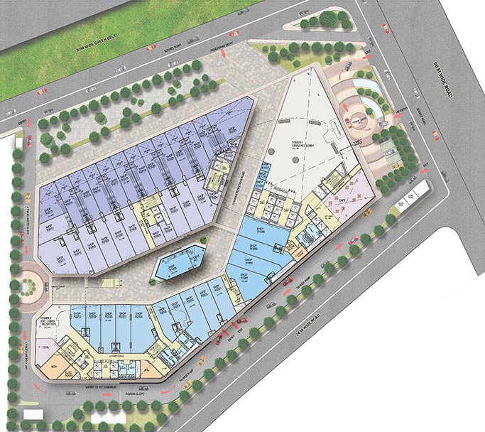 This financial center is one of the best energy-efficient commercial space in India with platinum lead certification, having the retail shops and restaurants along with two commercial office space towers of 40 floors and 10 floors respectively - located right on the intersection of 84-meter Golf Course Extension Road and 60-meter sector road having direct connectivity with Delhi Jaipur Highway, Golf Course Road, Sohna Road, Southern Peripheral Road, and Faridabad.