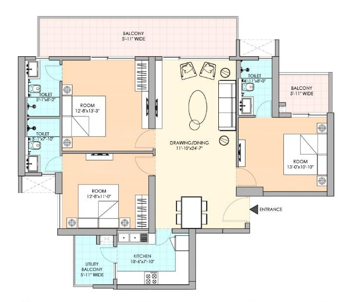 | 3 BHK + 3T + SQ | 2040 | ₹1.86 Cr |