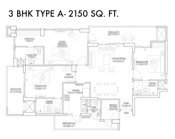 | 3 BHK | 2150-2500 sqft. | ₹ 3.5 Cr* Onwards |
