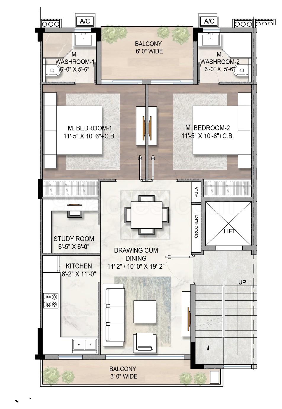 | 2.5 BHK | 1100-1250 | ₹65 Lakhs* |