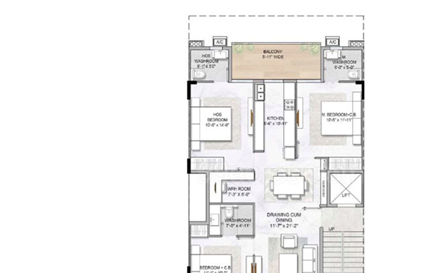 Area : 955.00 sq.ft. - 1095.00 sq.ft.