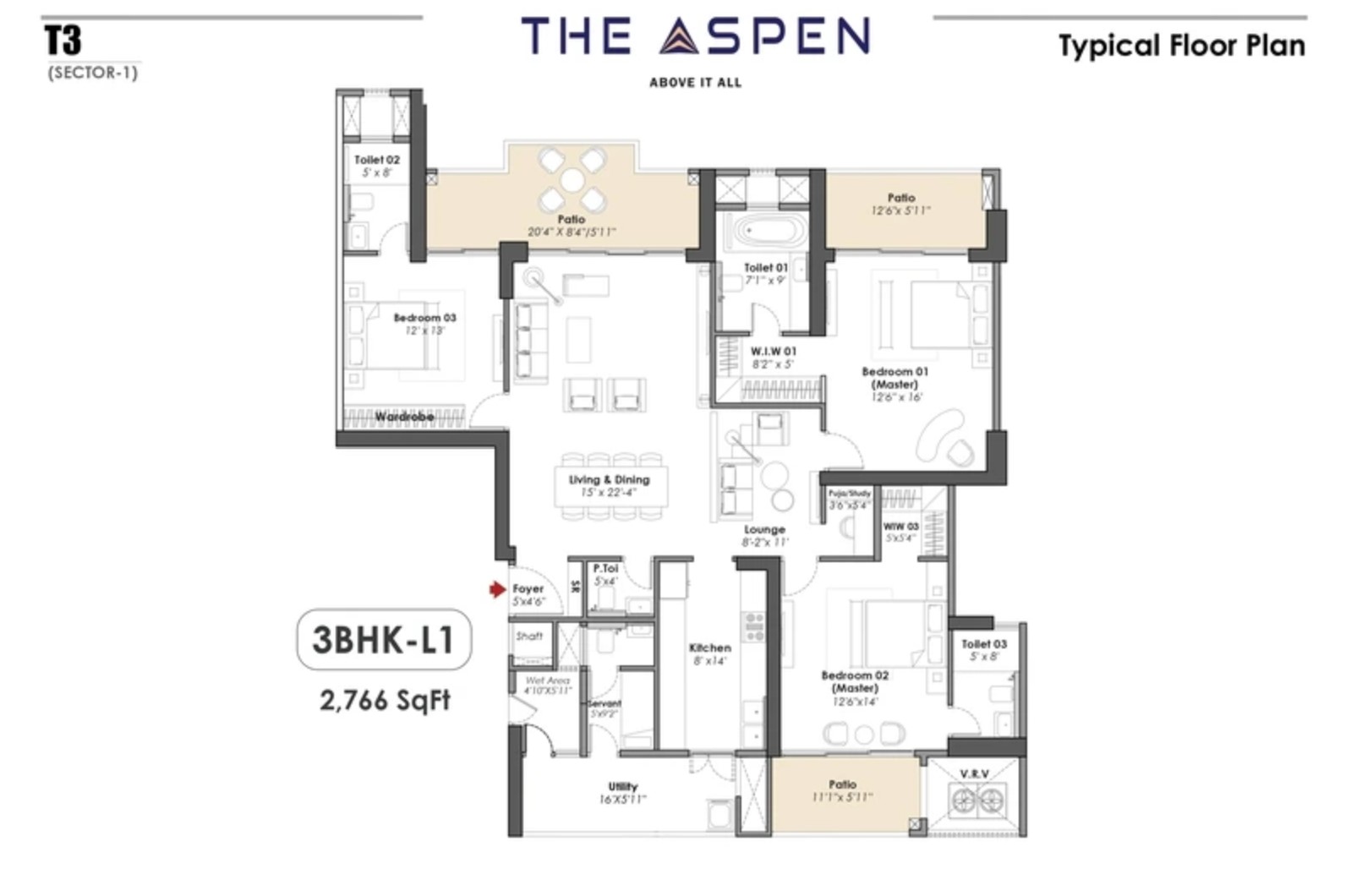 | 3 BHK + Servant | 2,290 sq.ft. | On Request |