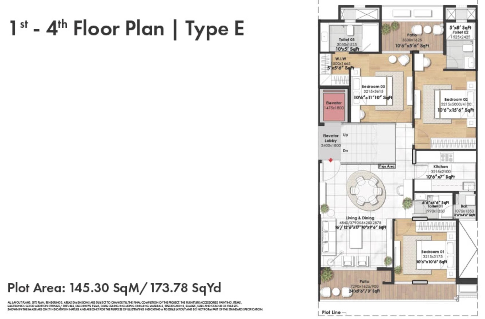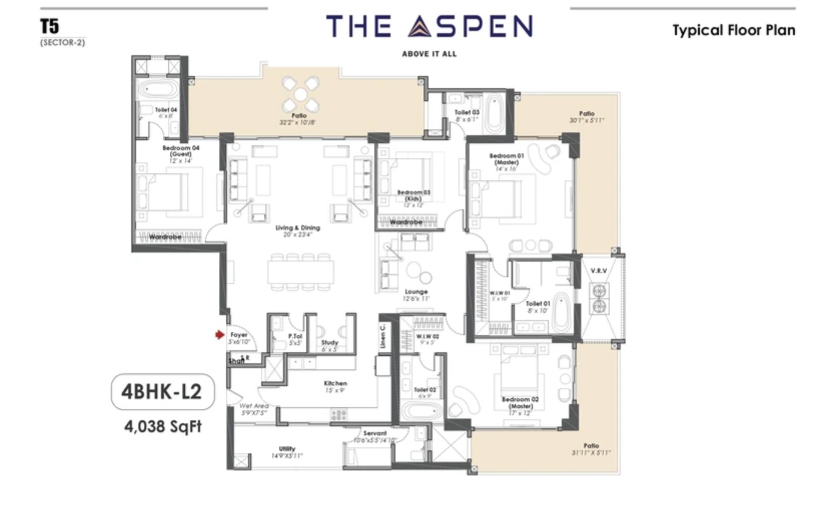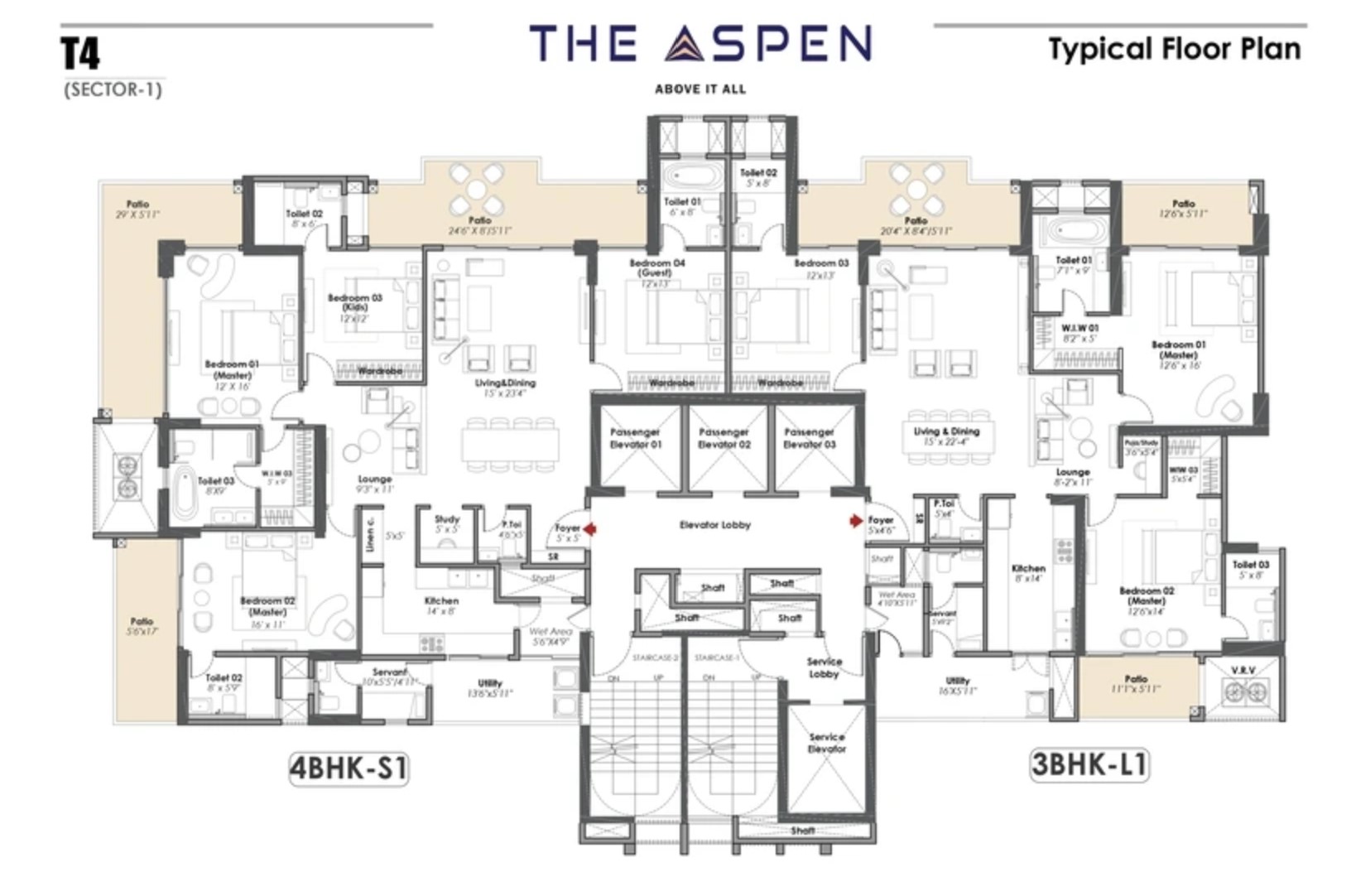 | 4 BHK + Study + Servant | 3,243 sq.ft. | On Request |